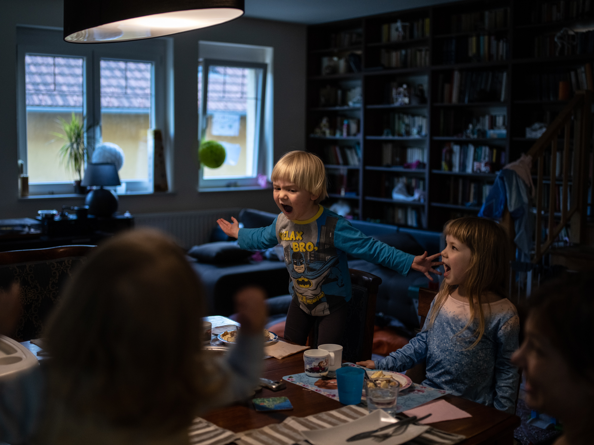 Our four children, my mother-in-law, my wife and I, we undertook voluntary quarantine in our home in Budakeszi from March 14th until the official reopening of the kindergartens in June. General safety being of utmost importance, almost everyone strictly adhered to the isolation until its final moments in the end of June. In my case it’s true that I started photographing outside of our home from the end of April, besides documenting our forcibly changed lives since the beginning of our quarantine. It wasn’t easy at first, as a documentary photographer, I was not used to being at home all the time.